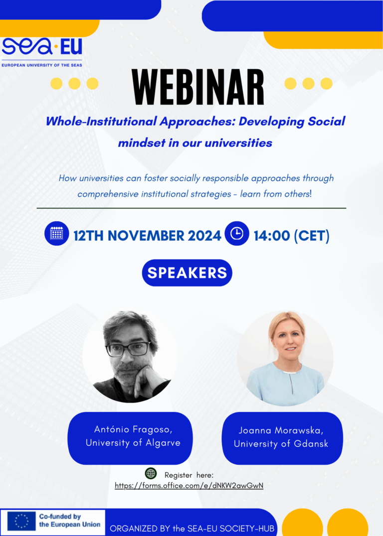 This event will focus on how universities can foster socially responsible approaches through comprehensive institutional strategies. Don’t miss this opportunity to learn from the experiences of other SEA-EU institutions!