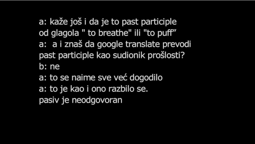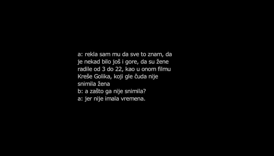 In her works, Ana Hušman dissects the structure and texture of filmic elements through different forms—film, installation, book, the record of image, sound and text. She experiments with the possibilities of animation, and combines documentary and fiction elements, voice and articulation. Her working processes question the boundaries of amateur and professional, performative and media, and the structures that shape behavioural patterns.