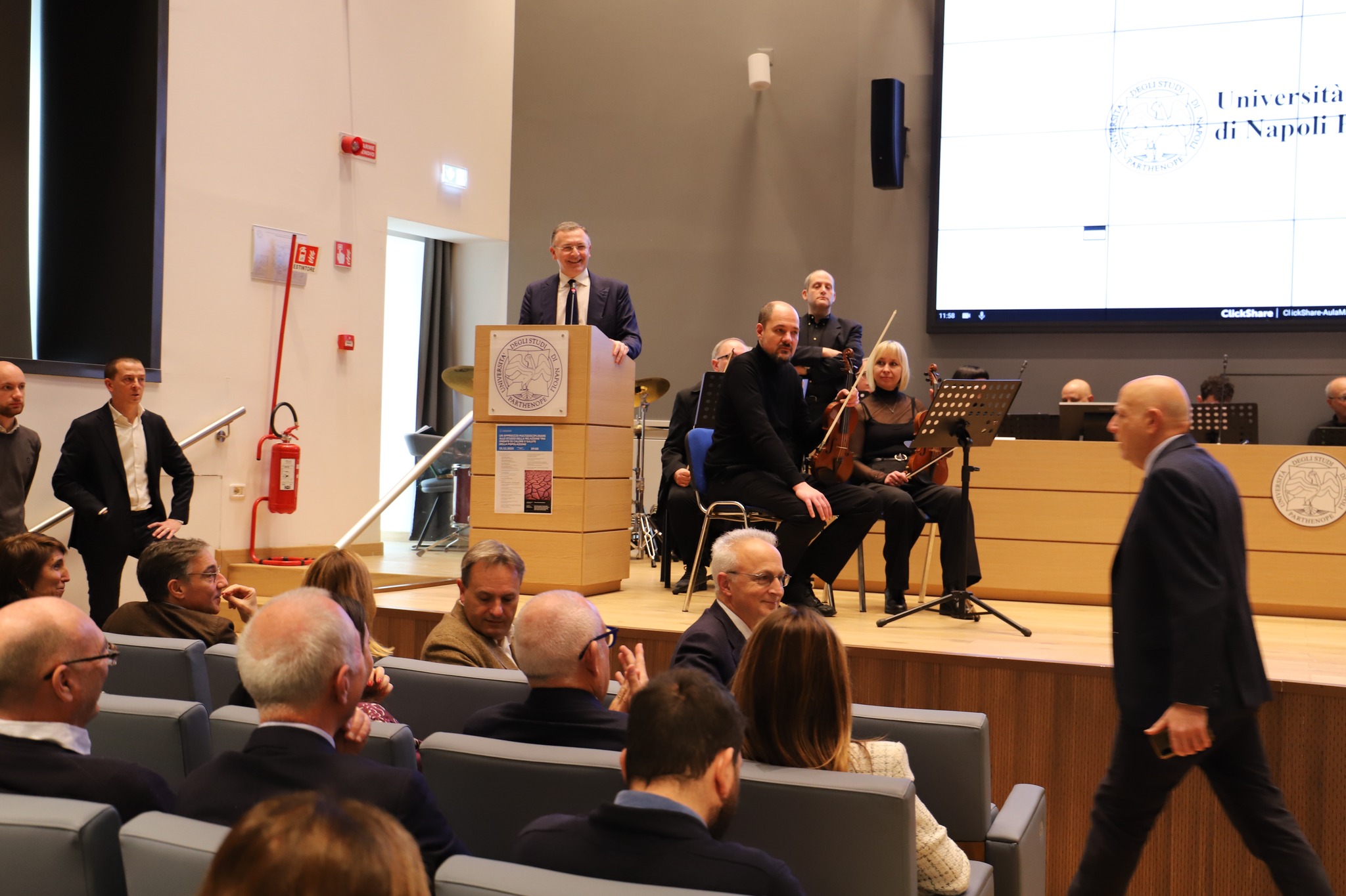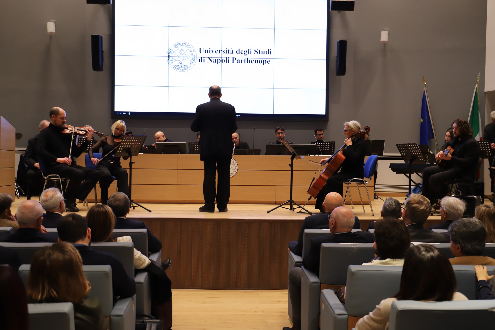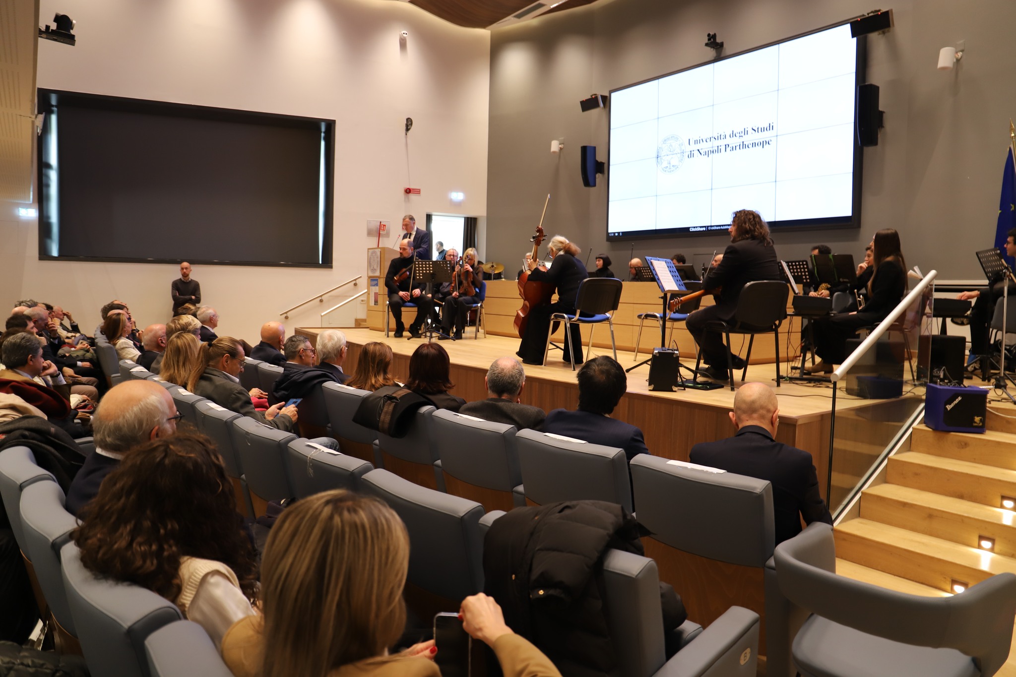 On Monday, 22 December 2025, Parthenope University of Naples hosted its traditional Christmas Concert in a packed and highly engaged Aula Magna. The performance featured the Parthenope University Orchestra, conducted by Maestro Keith Goodman, and was warmly received by the academic community.