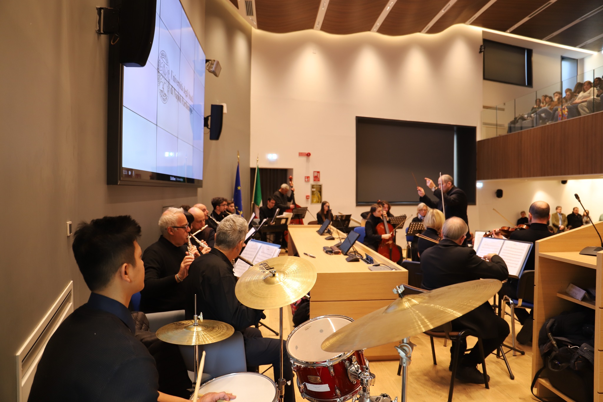 The concert formed part of the University’s Third Mission project “La Musica UNIsce”, which aims to strengthen the relationship between the University and the wider community through music and culture. The programme included works by Charpentier, Morricone, Shostakovich and Bizet, offering the audience a rich and varied musical journey.