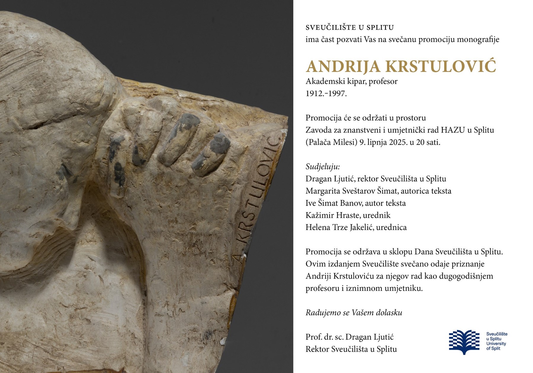 The University of Split is proud to present the first monograph dedicated to Andrija Krstulović (1912–1997), a key figure in Croatian sculpture of the 20th century. The launch will take place as part of University Days on Monday, 9 June at 8 PM at the HAZU Institute in Split.