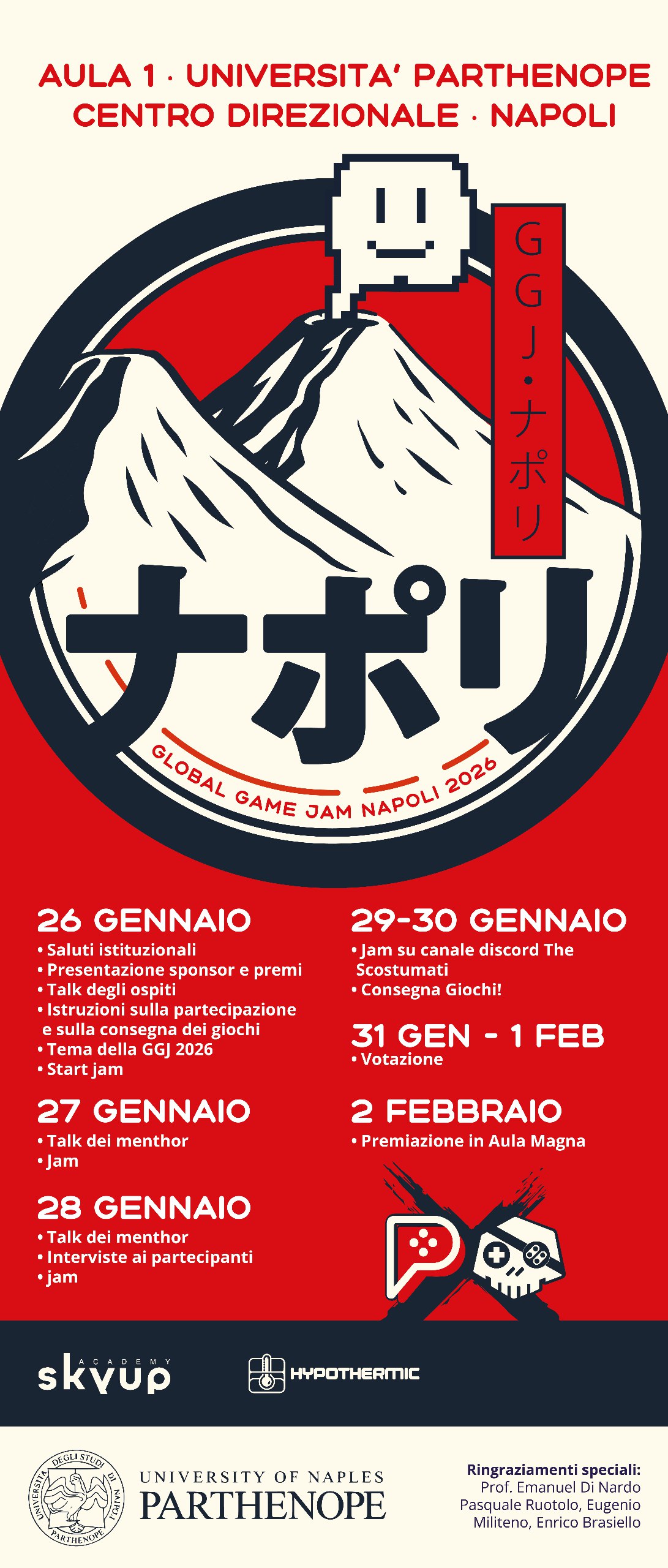 From 26 January to 2 February 2026, Parthenope University of Naples is set to host the largest Global Game Jam ever held in Naples. The international event will run in a hybrid format, both on site and online, bringing together students, developers, designers and creatives for an intensive week of collaboration focused on video game creation, based on a theme announced simultaneously worldwide.