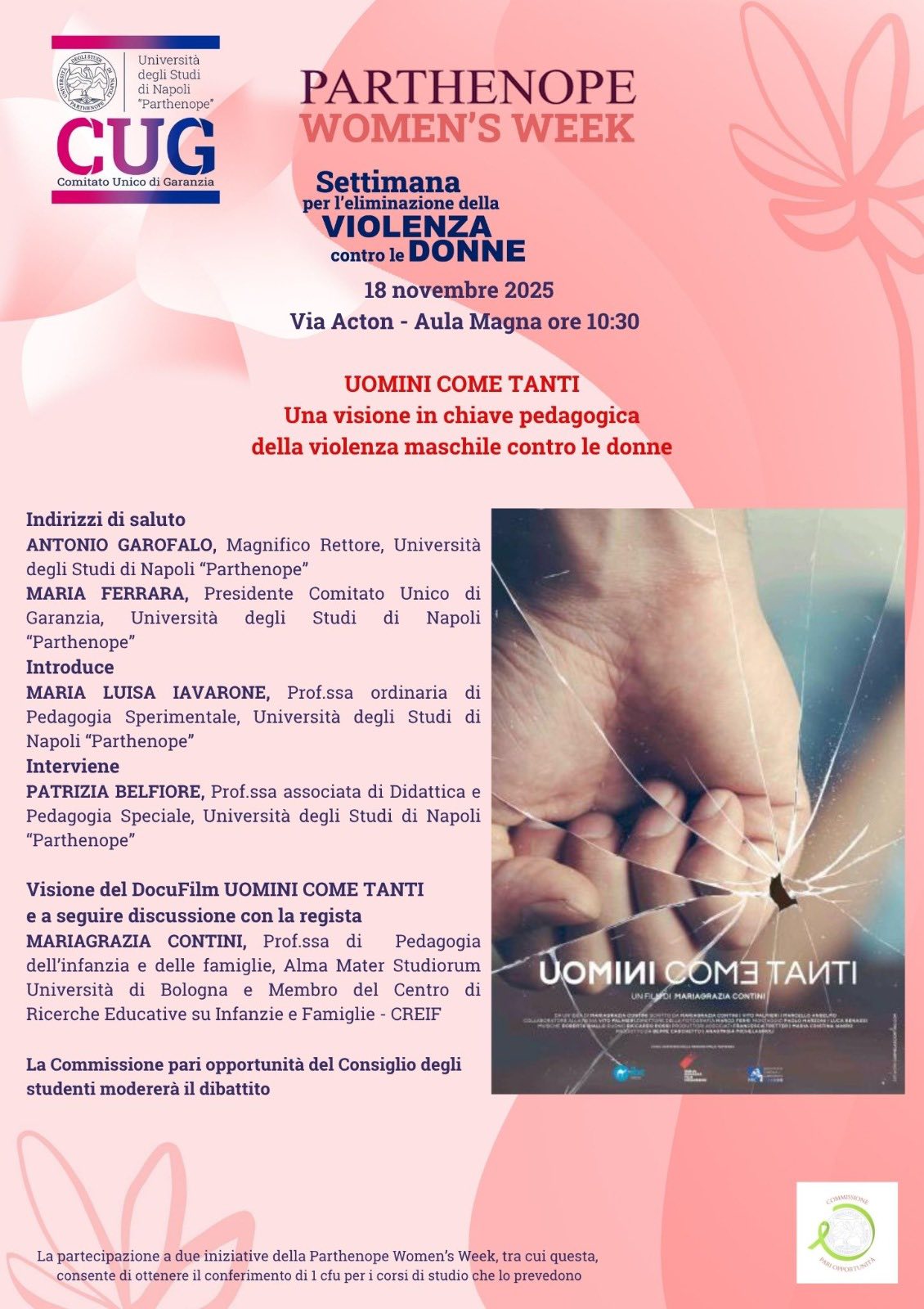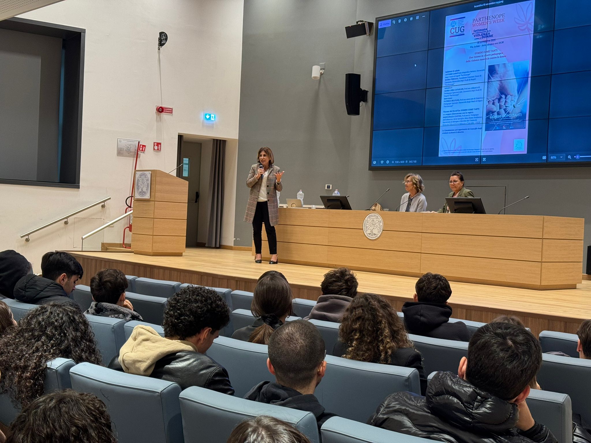 The Parthenope Women’s Week opened with a strong and engaging start on 18 November. After the introductory session and welcome remarks by Rector Antonio GarofaloCUG President Marilù Ferrara, and Professor Maria Luisa Iavarone, the spotlight turned to Mariagrazia Contini, the renowned director and pedagogue from the University of Bologna (Alma Mater Studiorum).