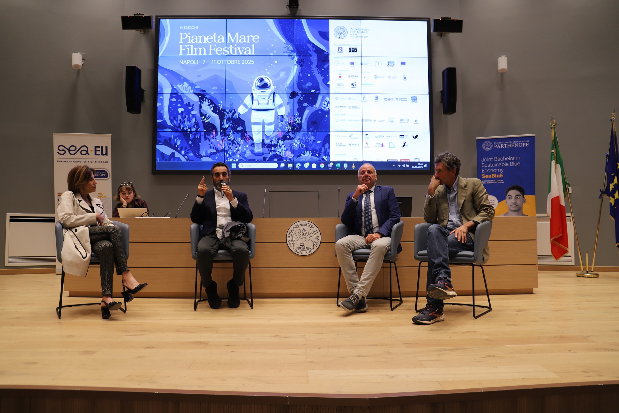 Taking part in the opening event were Giorgio Budillon and Maria Luisa Iavarone, members of the Festival’s educational and training committee, alongside Maurizio Gemma, Regional Director of the Film Commission, and Max Mizzau Perczel, Director of the Pianeta Mare Film Festival.