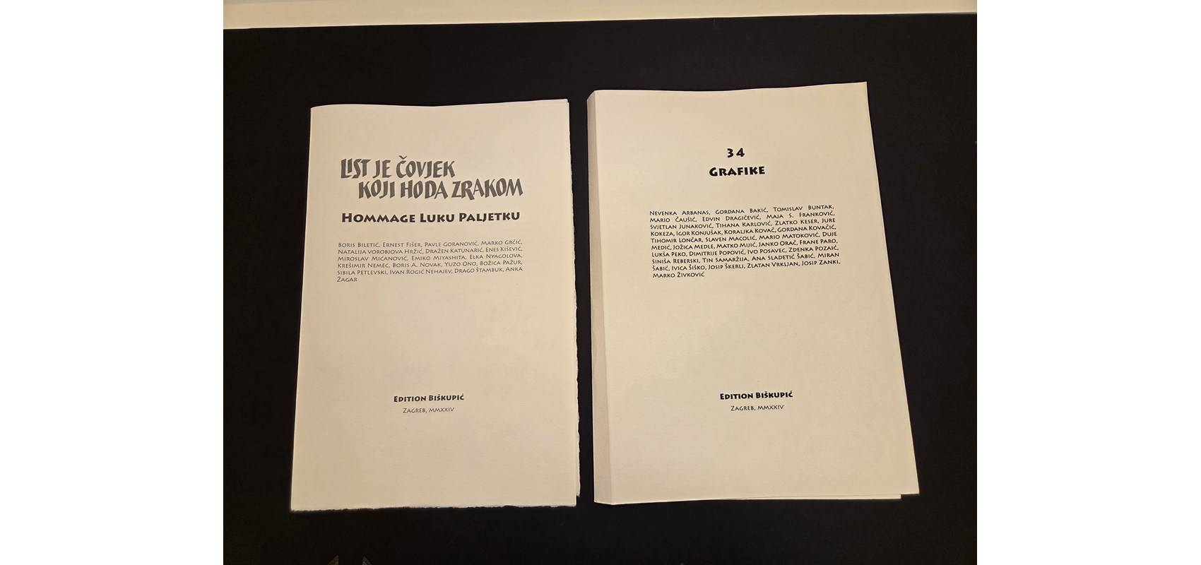 The evening will feature a poetry and music program performed by actors Pero Eranović and Davor Pavić, with music by Darko Matičević. The portfolio, dedicated to academician Luka Paljetak – a distinguished Croatian poet, writer, and translator – brings together 17 poems and 34 graphic works by artists and poets from Croatia, Slovenia, Montenegro, Bulgaria, and Japan.