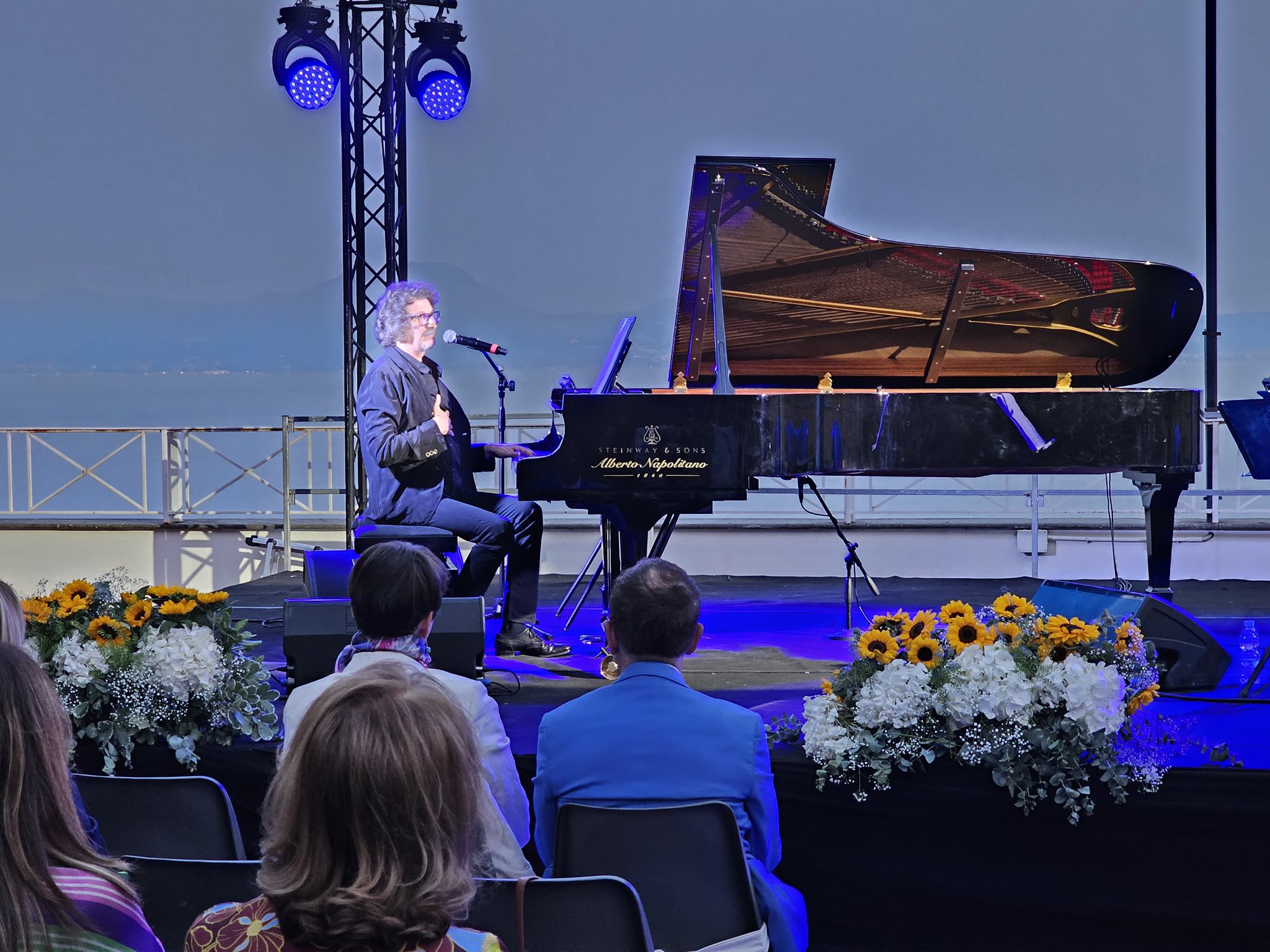 The opening concert featured singer-songwriter Sergio Cammariere, who captivated the audience with an intimate performance accompanied by piano.