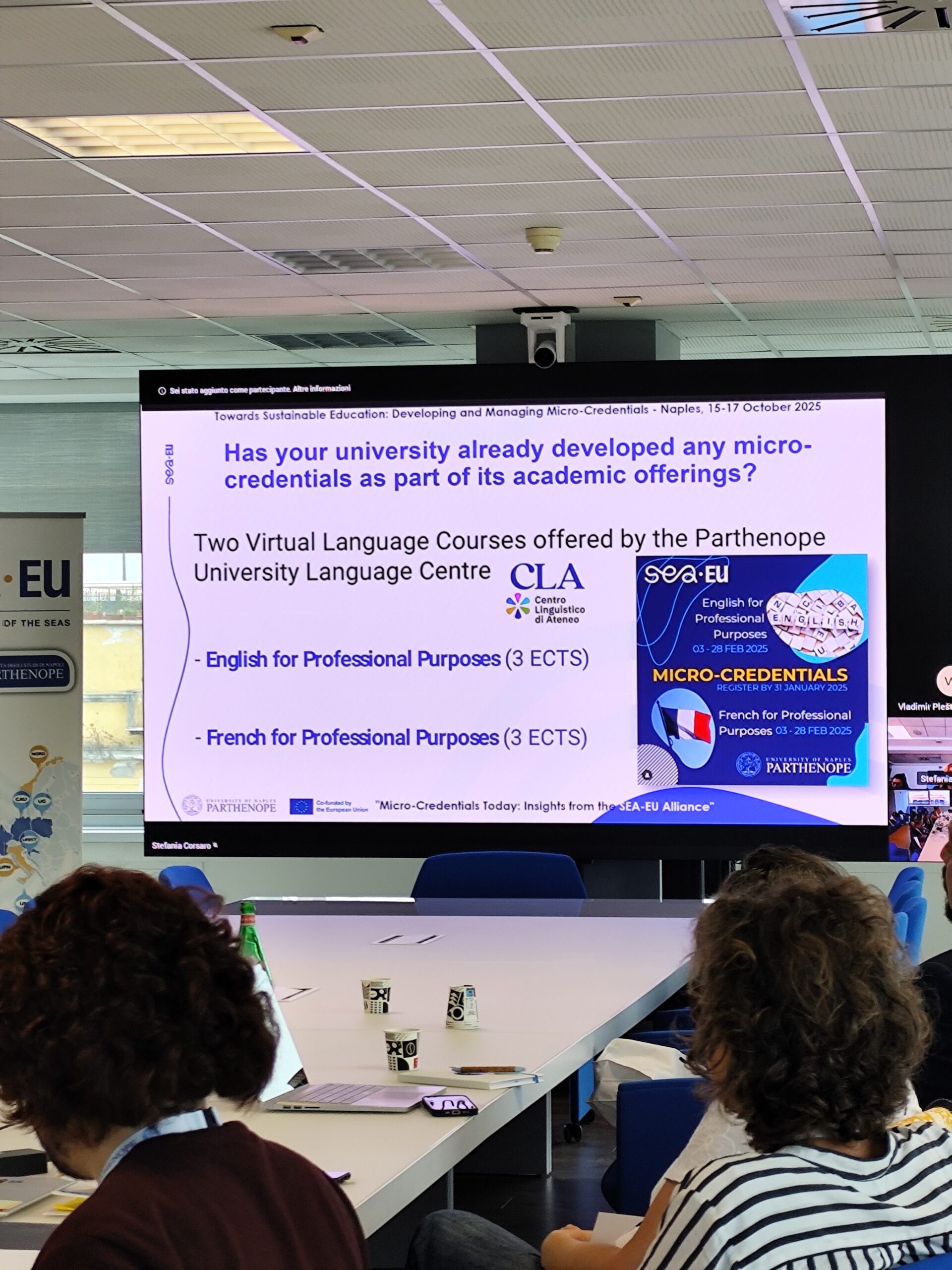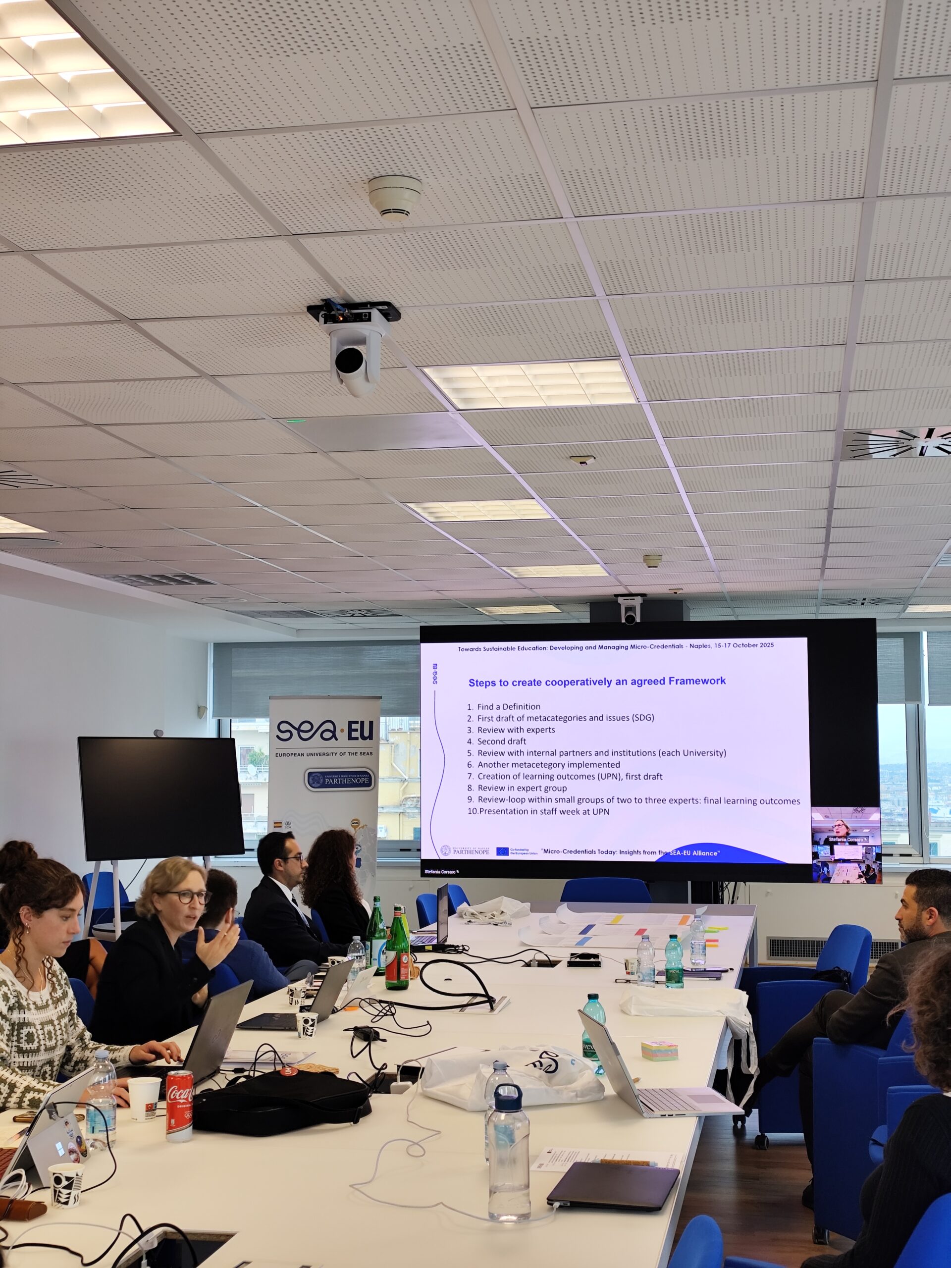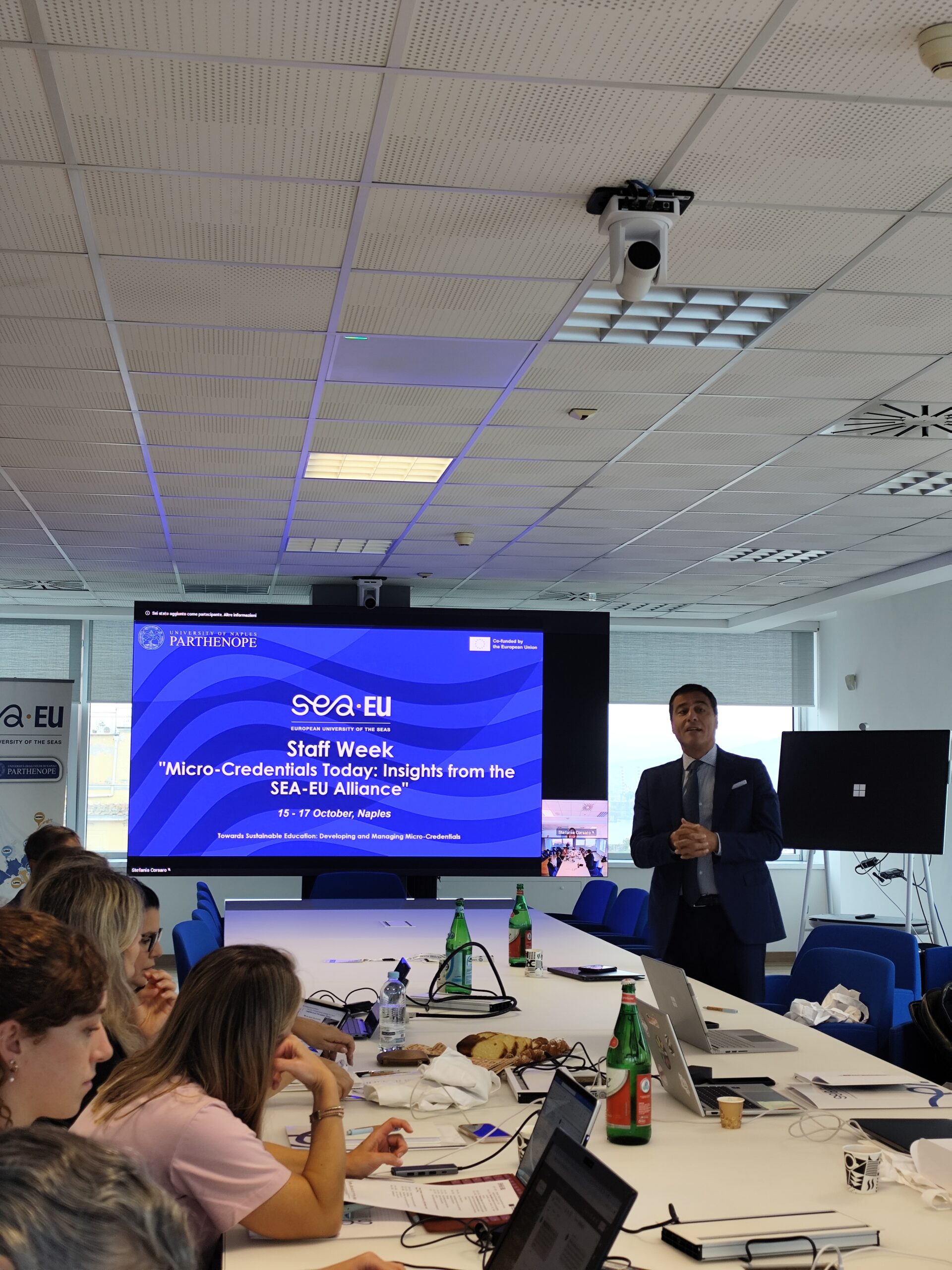 From 15 to 17 October 2025, Parthenope University of Naples hosted the SEA-EU Staff Week titled “Towards Sustainable Education: Developing and Managing Microcredentials”, welcoming academic and administrative staff from the SEA-EU Alliance to discuss the dynamic features of microcredentials in European higher education.