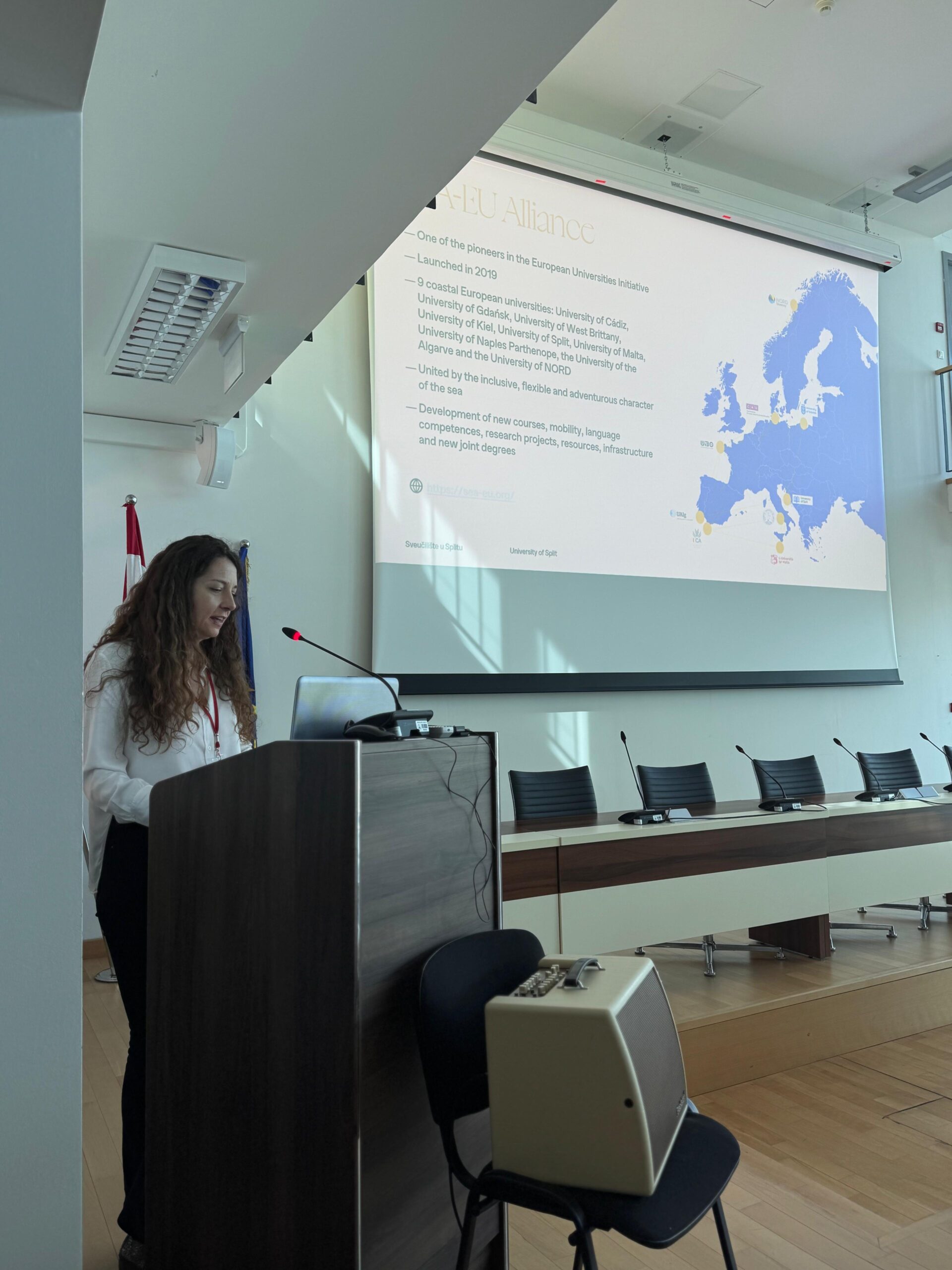 The initiative was led by Sarah Bermann, Chief Student Officer of the European University for Well-Being (EUniWell), who joined the visit in her personal capacity as a Konrad Adenauer Foundation scholarship holder. The group’s main goal was to understand how the European Union shapes academic and student life in Croatia, particularly through participation in European University alliances such as SEA-EU – the European University of the Seas, of which the University of Split is a member.