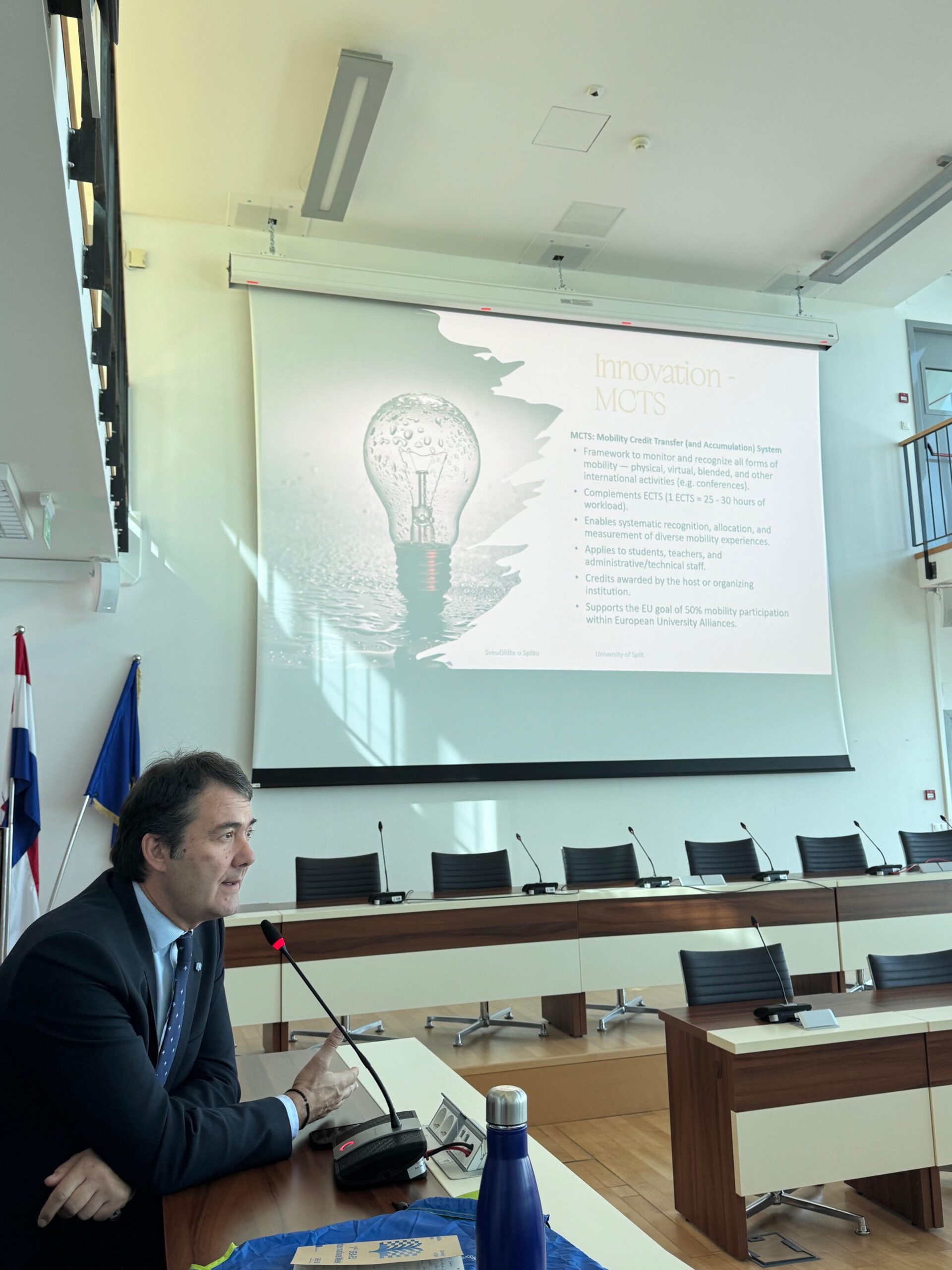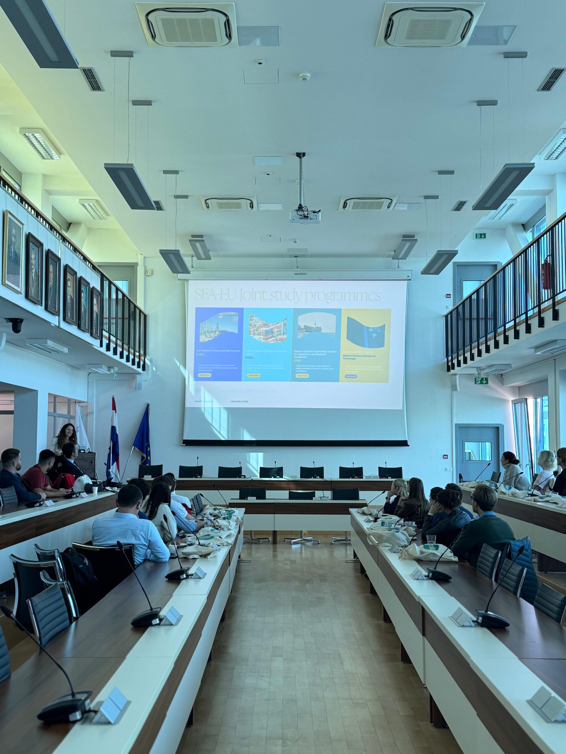 The visiting students were warmly welcomed by Prof. Zoran Đogaš, Vice-Rector for Internationalisation, Jerko Šarić, President of the Student Assembly, Roko Glavinović, student representative in the SEA-EU Governing Board, Ana Ćosić, Head of the International Relations Office, and Gordana Dujmović, Head of the SEA-EU Office. They engaged in a lively exchange on topics such as higher education cooperation, student engagement, mobility, innovation, and mental health — reflecting shared European priorities within the academic community, especially among students.
