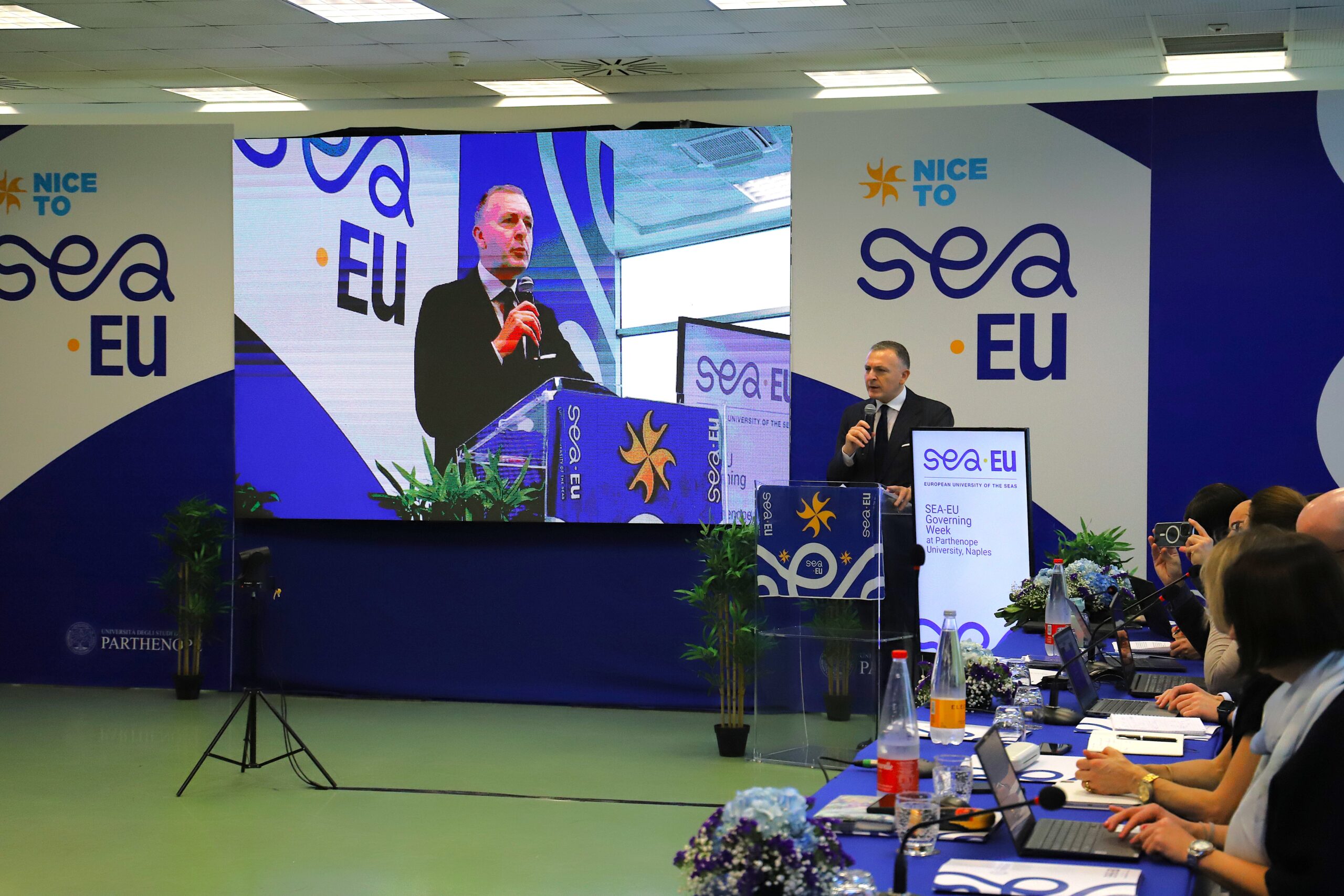 From 25 to 28 November 2025, Parthenope University proudly hosted the SEA-EU Governing Week, welcoming delegations from all partner universities for a series of strategic meetings, collaborative sessions, and cultural exchanges. Throughout the week, representatives worked together to strengthen the Alliance’s long-term vision, develop joint initiatives, and deepen academic and institutional cooperation.