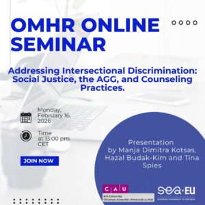 On Monday, 16 February, at 13:00 CET, the Observatory of Migration and Human Rights will continue its monthly online seminar series with a stimulating presentation from the University of Kiel. The seminar, entitled “Addressing Intersectional Discrimination: Social Justice, the AGG, and Counseling Practices,” will be delivered by Manja Dimitra Kotsas, Hazal Budak-Kim, and Tina Spies.