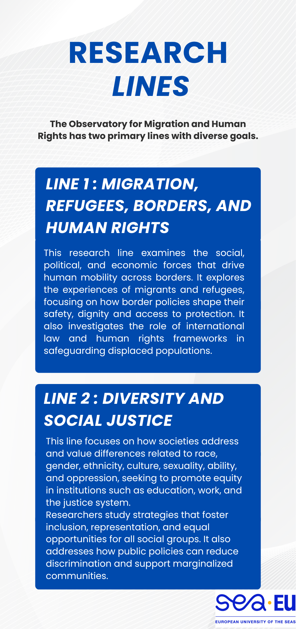The Observatory of Migration and Human Rights is a space for analysis, research, and public engagement, operating within the SEA-EU Alliance and involving researchers from diverse disciplines.