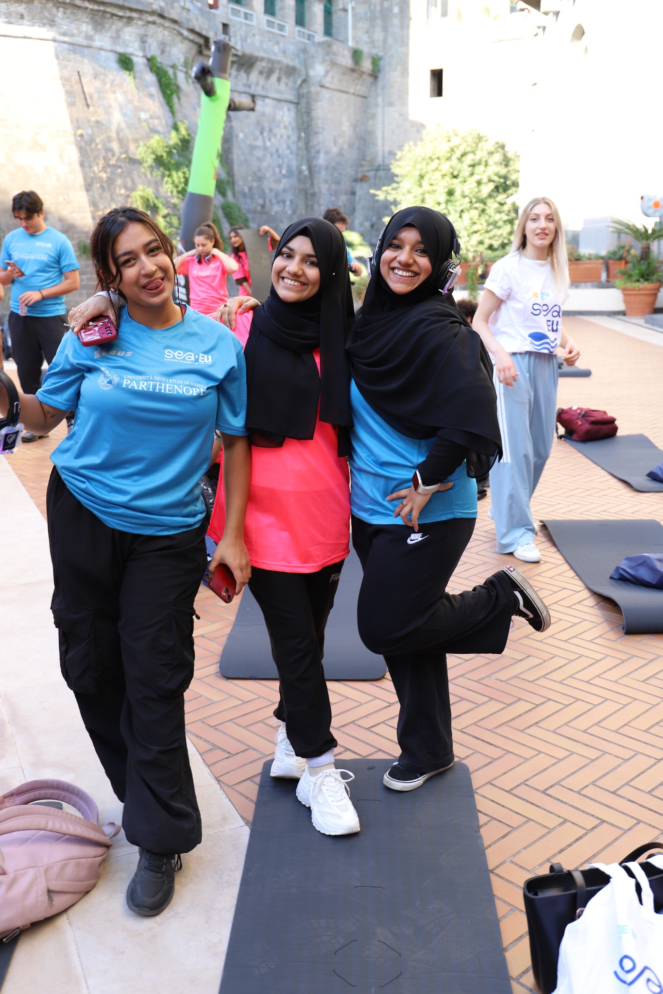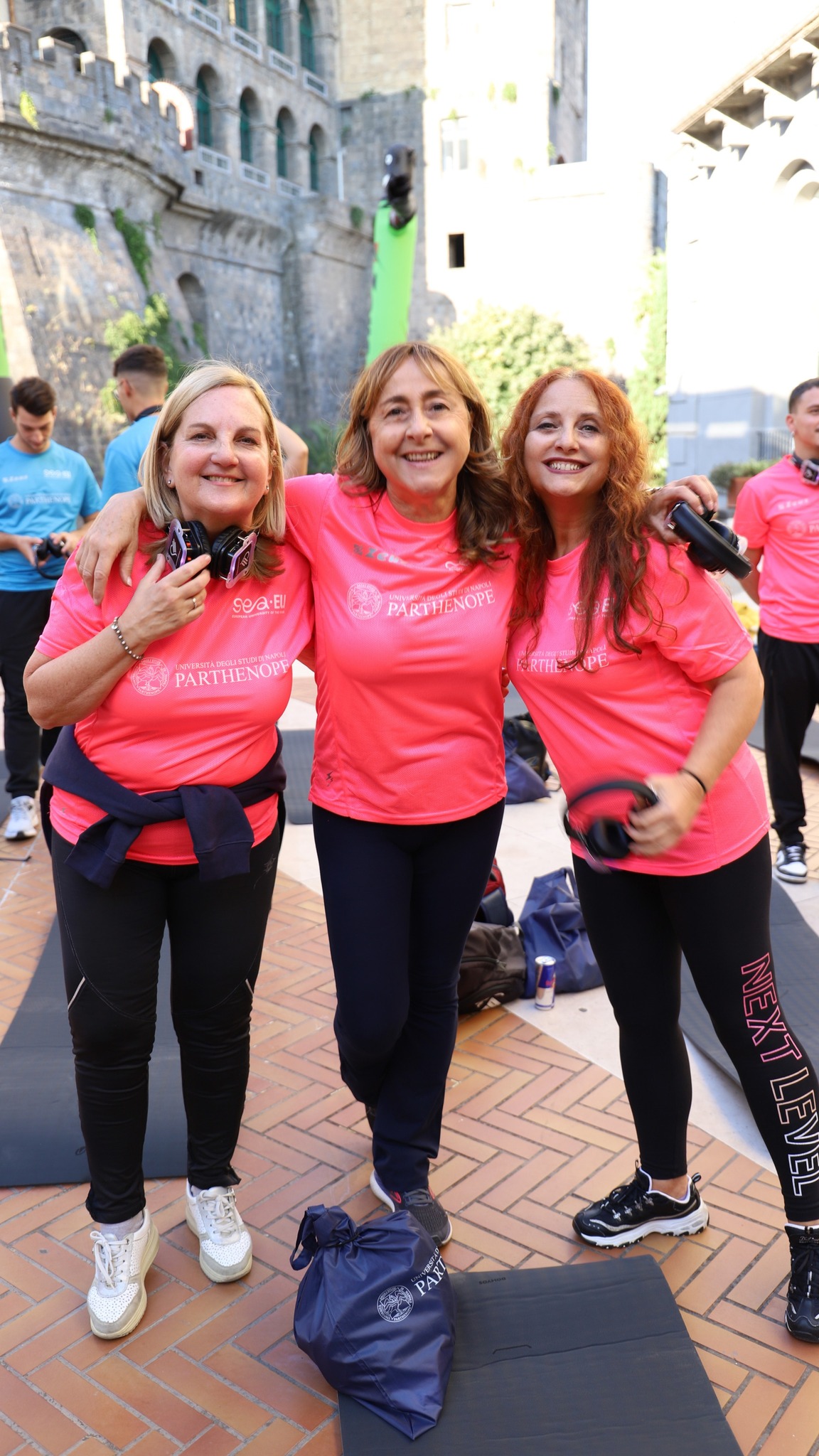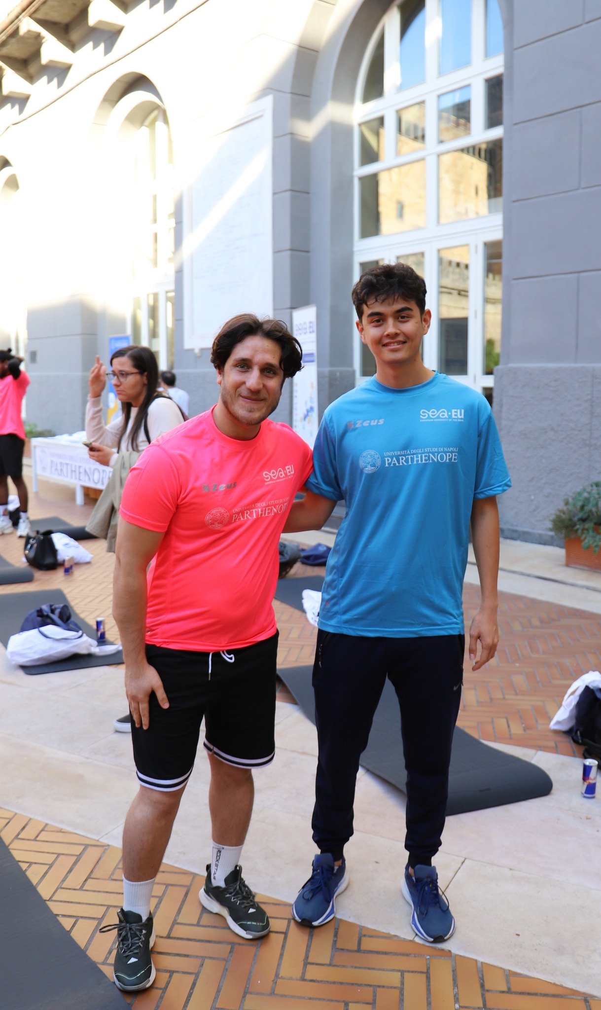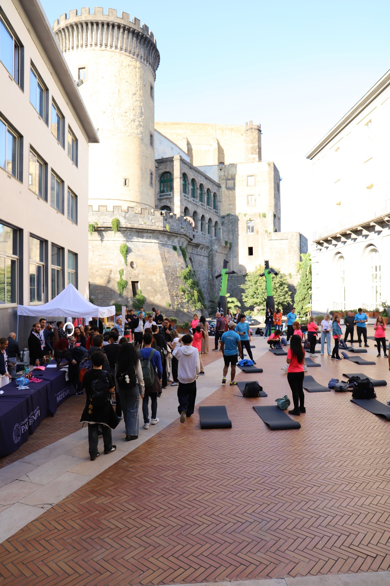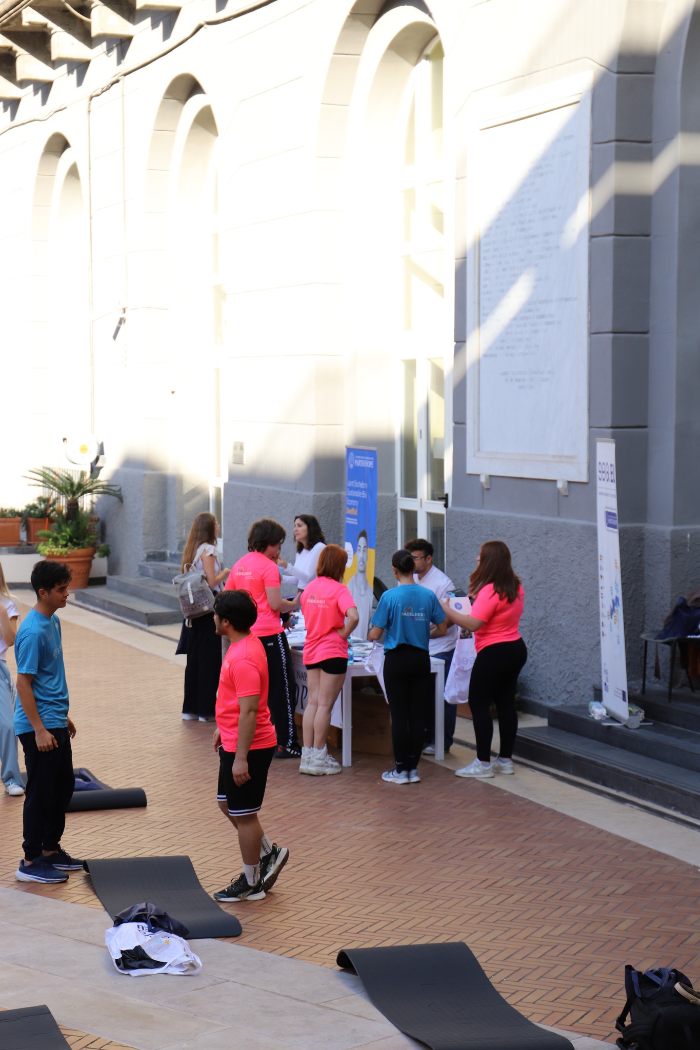 The courtyard of Parthenope University’s Central Administration was transformed into an open-air gym, welcoming around 150 students who took part in a dynamic masterclass led by Jill Cooper, Marianna Perruno (CEO of Padelness) and Gil Lopes – internationally recognised figures and leading professionals in the fitness sector.