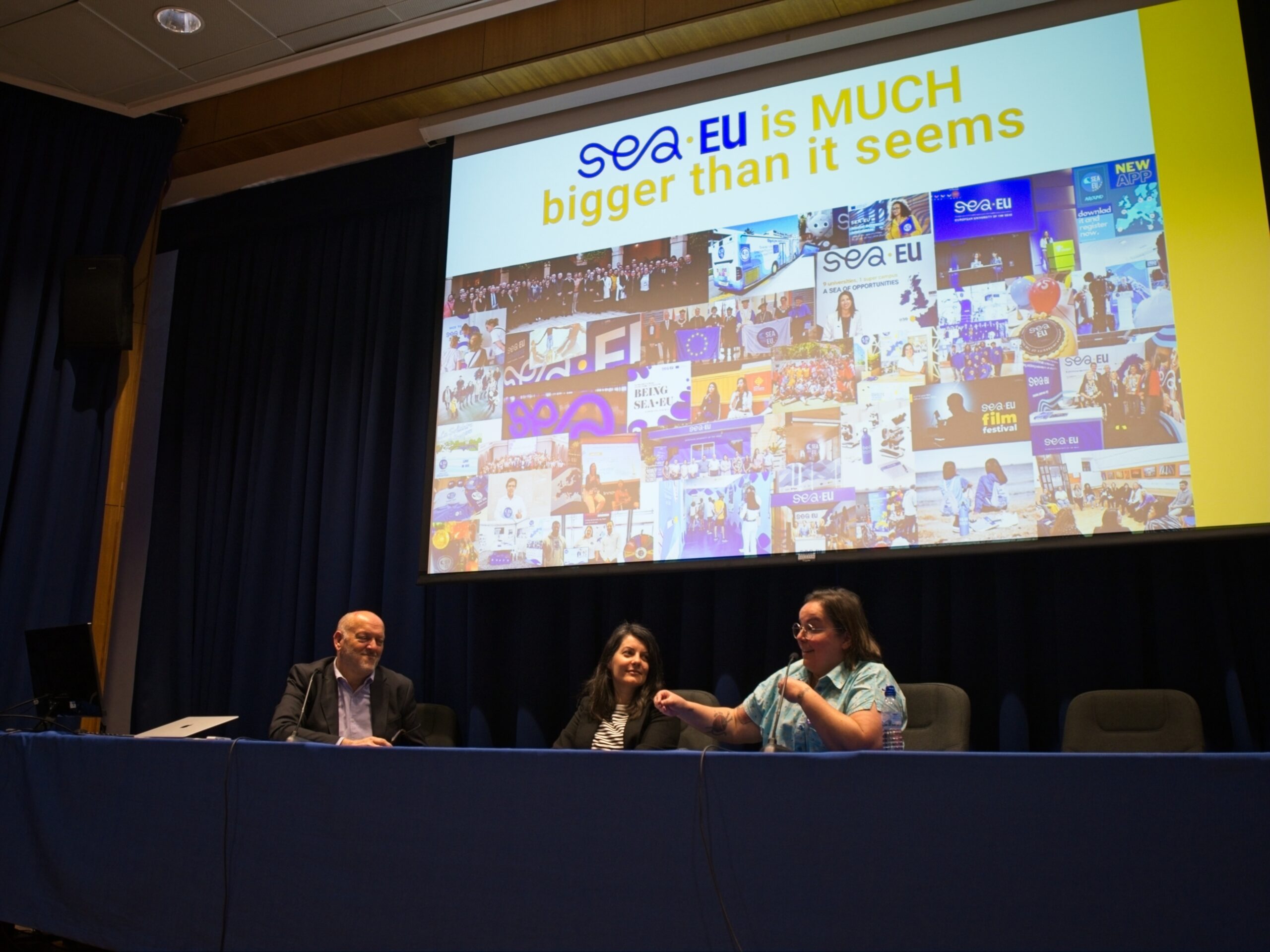 The SEA-EU Head of Communications, Irene de Andrés, from the University of Cádiz, presented the evolution of the SEA-EU Communication and Marketing over the past six years of the Alliance. The session also included the lecture “Science Is for Everyone — But Only If We Make It So!”, delivered by Professor Cristina Veiga-Pires, as well as presentations of projects developed by partner universities.