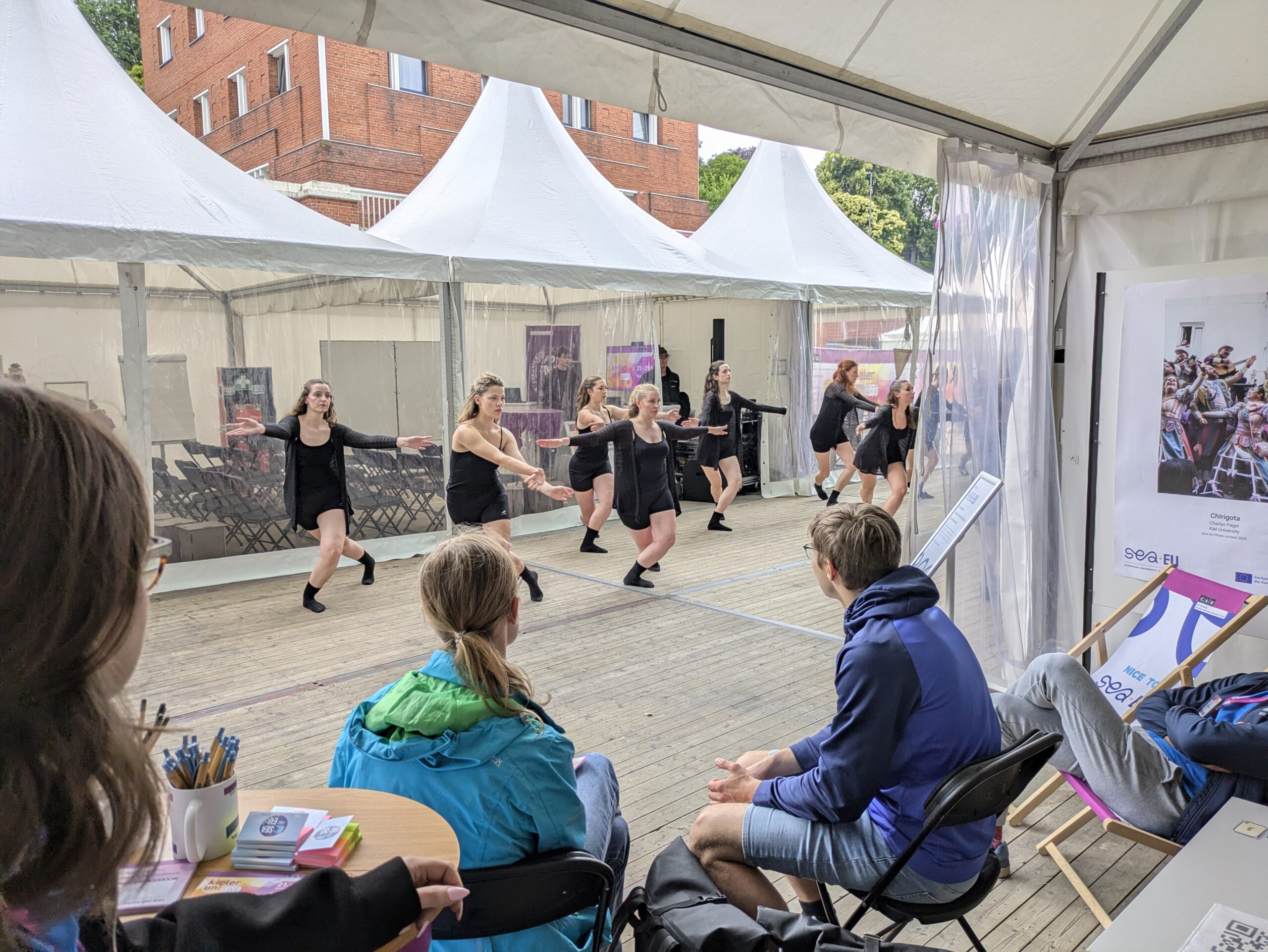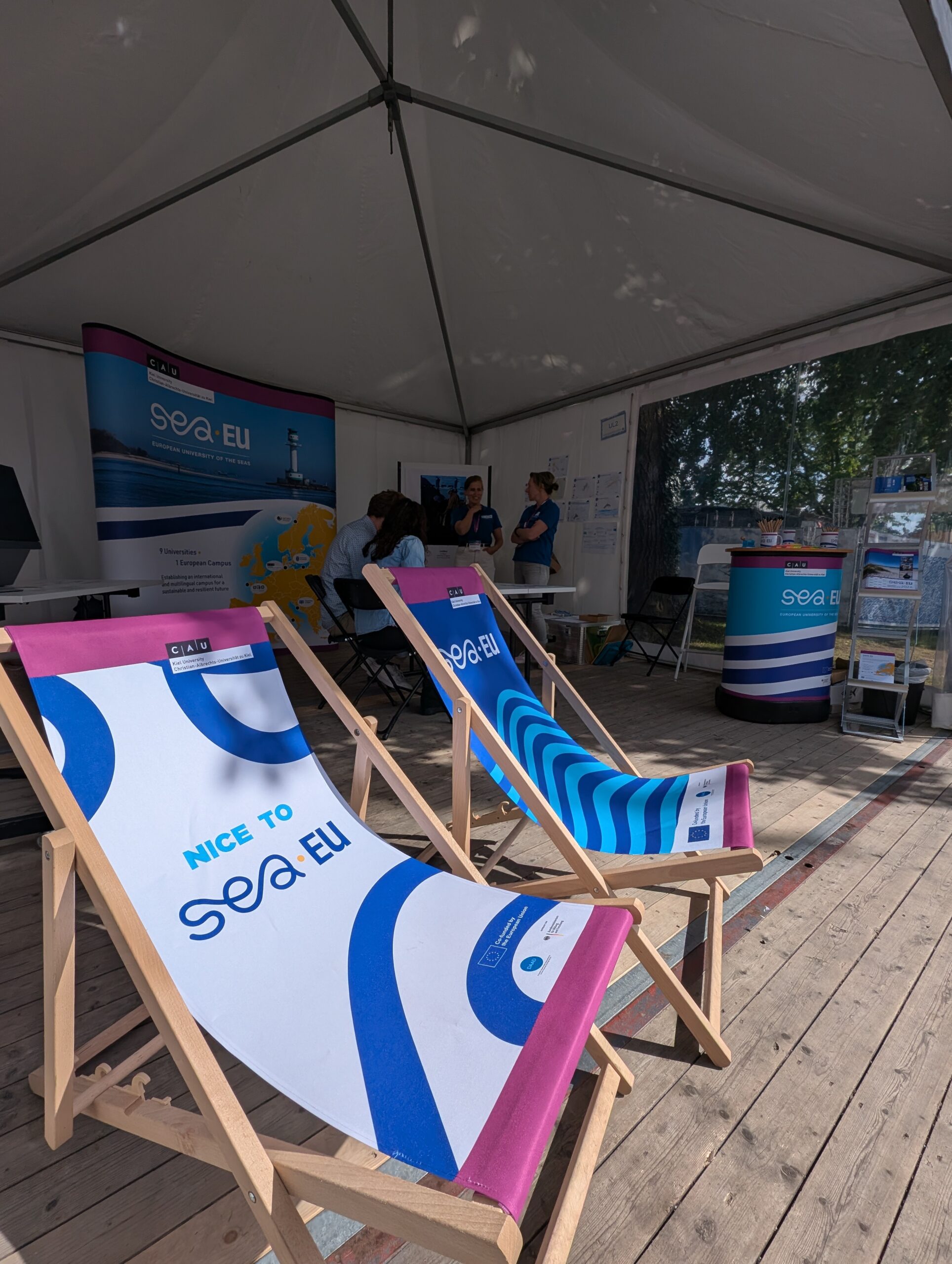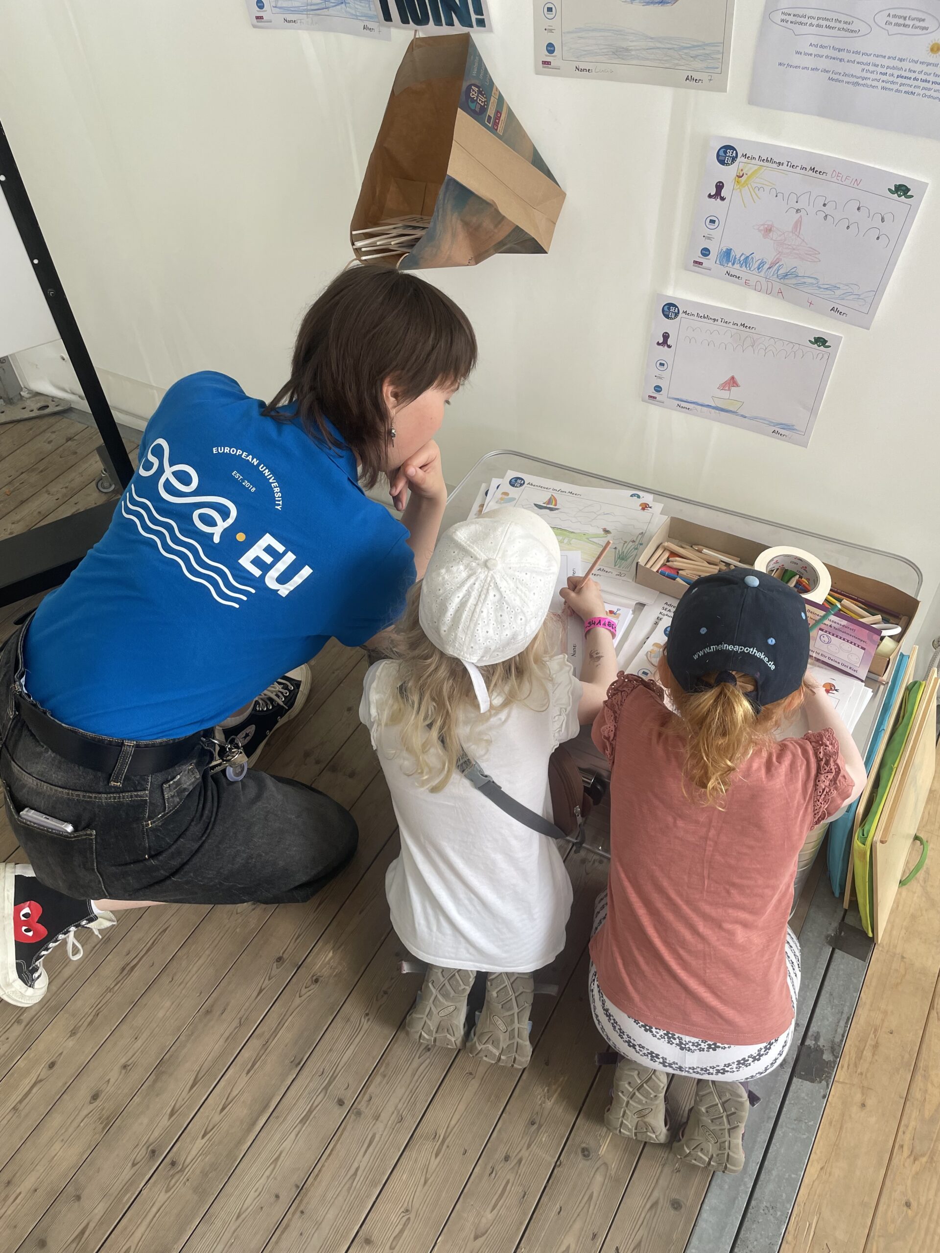 For the second year in a row, SEA-EU@CAU presented the SEA-EU Alliance as part of the University’s showcase at this year’s Kiel Week festival. From the 21st to the 29th June Kiel University presented a varied programme at the “Kieler Uni Live” pavilion park situated on the waterfront in the city centre. During the entire week, Kieler Uni Live visitors were treated to a colourful and diverse programme of language courses, talks, hands-on experiments and activities, games, dance demonstrations and much, much more. The SEA-EU tent was open to visitors during the second half of the week from the 26th – 29th June. Under the motto “a stronger Europe”, the SEA-EU team presented the SEA-EU Alliance, its partners and values to curious visitors of all ages, with games exploring European languages and geography as well as drawing activities focussed on ocean ecosystems. Current and potential Kiel University students and professors also took the chance to talk to the SEA-EU team about opportunities and activities offered by the Alliance.