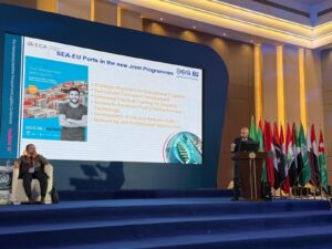 SEA-EU participation followed an invitation from the Arab Academy for Science, Technology and Maritime Transport (AASTMT), facilitated through the Algeciras Bay Port Authority (APBA) and within the framework of its involvement in the MEDPorts Association. This engagement reflects SEA-EU growing international outreach and its commitment to strengthening Mediterranean cooperation between higher education institutions and key maritime stakeholders.