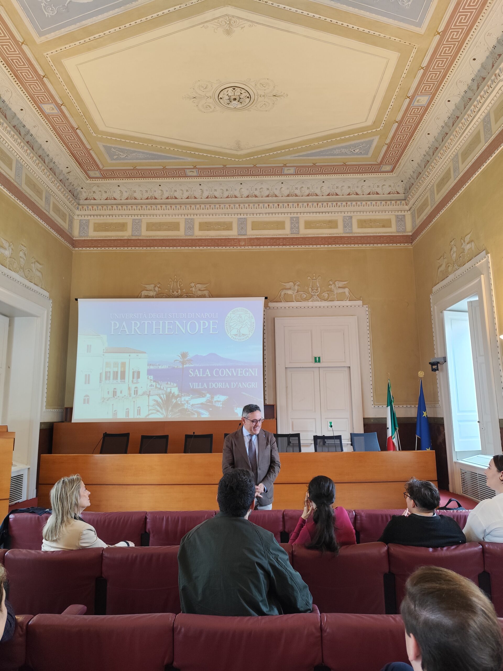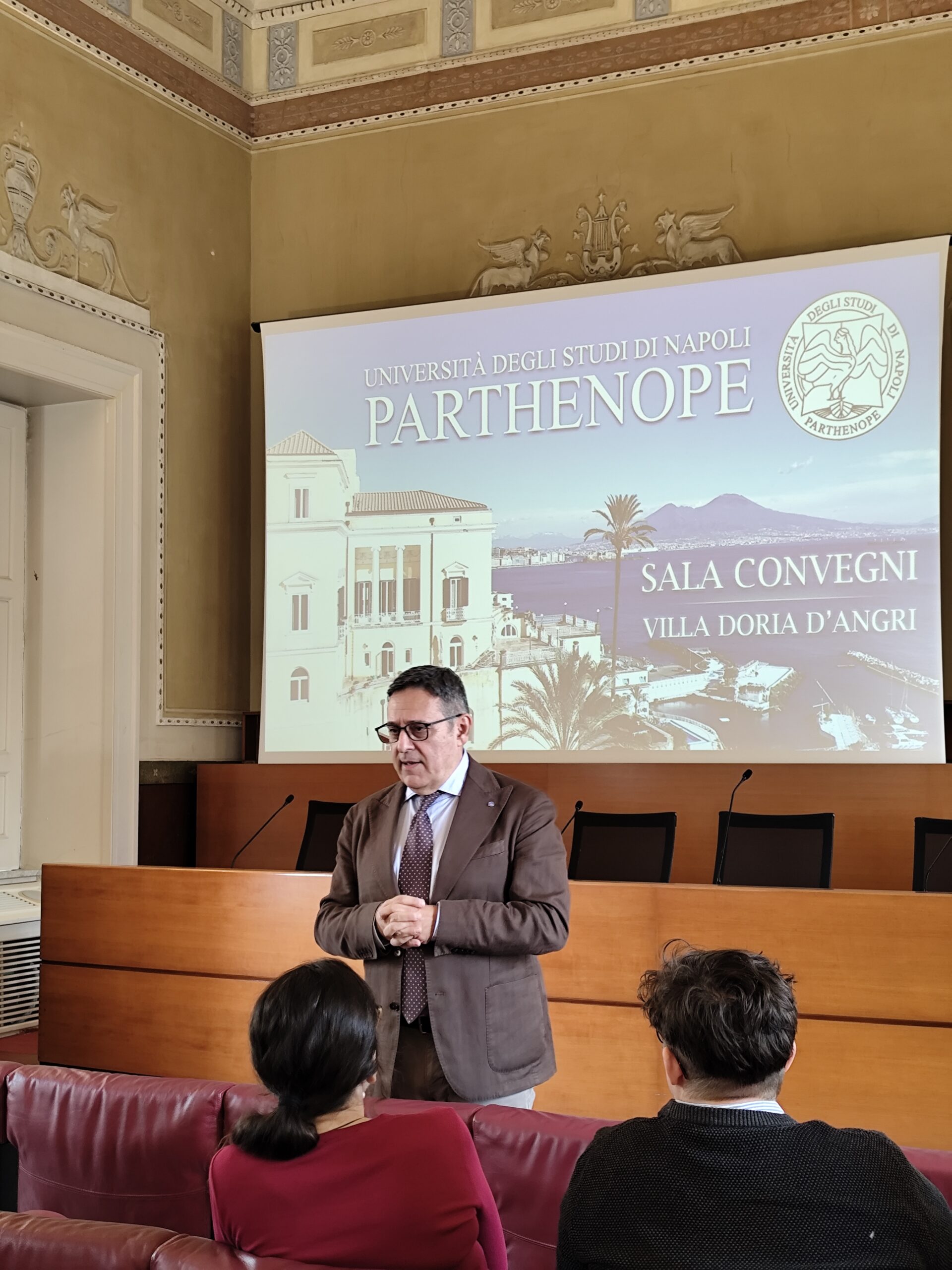 The dialogue was further enriched by the contribution of Dr. Carlo Corcione (City, St George’s, University of London), who collaborates with Parthenope’s Department of Law, offering a link between professional practice and sustainability themes.