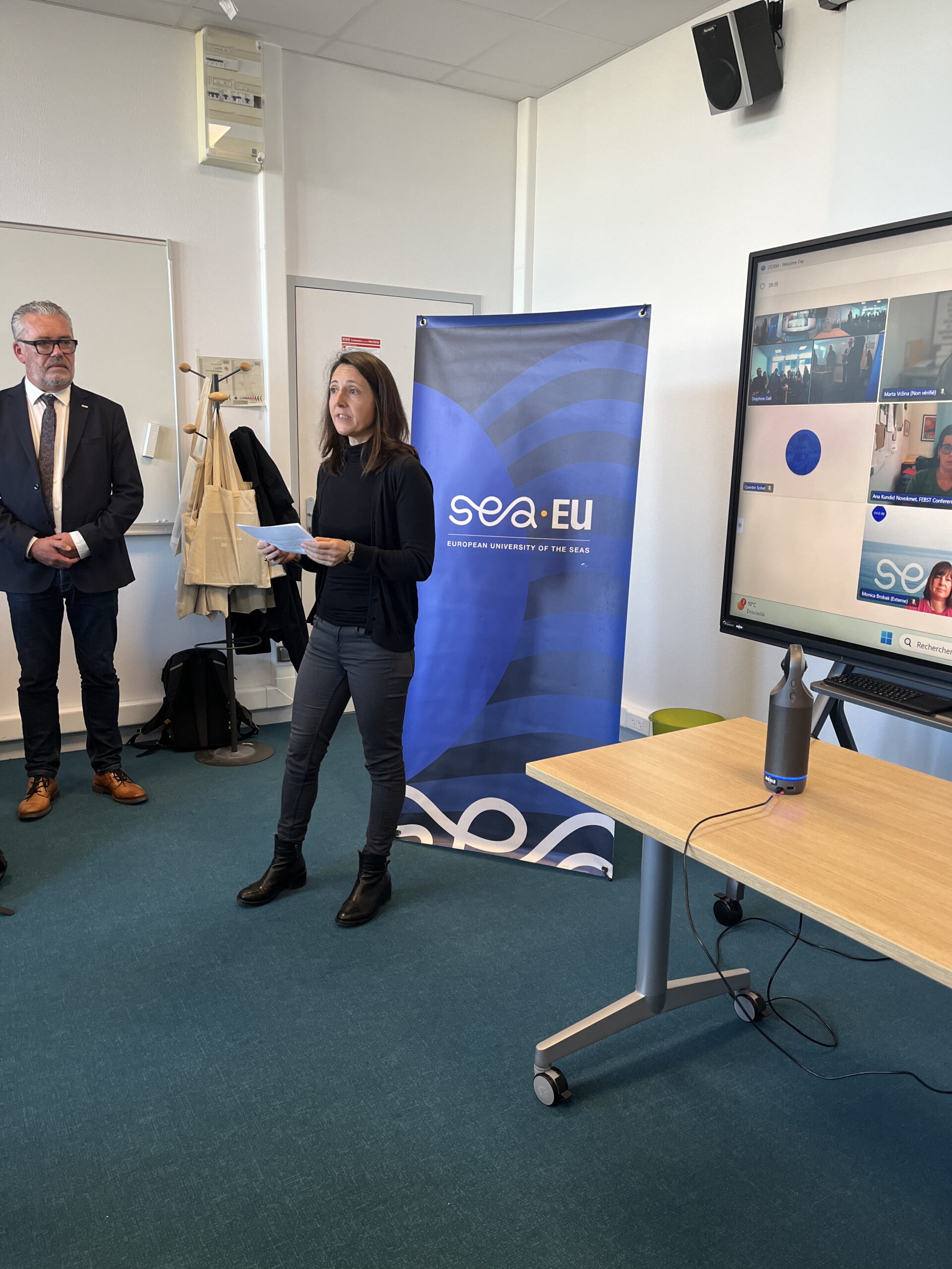 The inauguration began at 9:00 AM with a welcome coffee, followed by speeches from Pascal Olivard, President of the University of Brest, Marcela Iglesias, SEA-EU General Coordinator, and Adélie Pomade, UBO SEA-EU Vice-President.