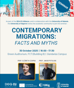 The University of Algarve hosted an insightful SEA-EU seminar titled “Contemporary Migrations: Facts and Myths” bringing together students, academics, and community members to reflect on one of the most pressing issues of our time.